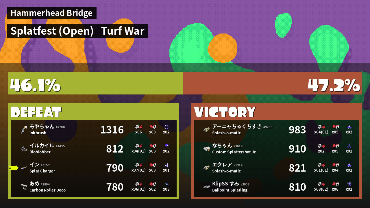 | Medals | #1 Overall Splatter #1 Popular Target #1 Enemy Splatter | ||