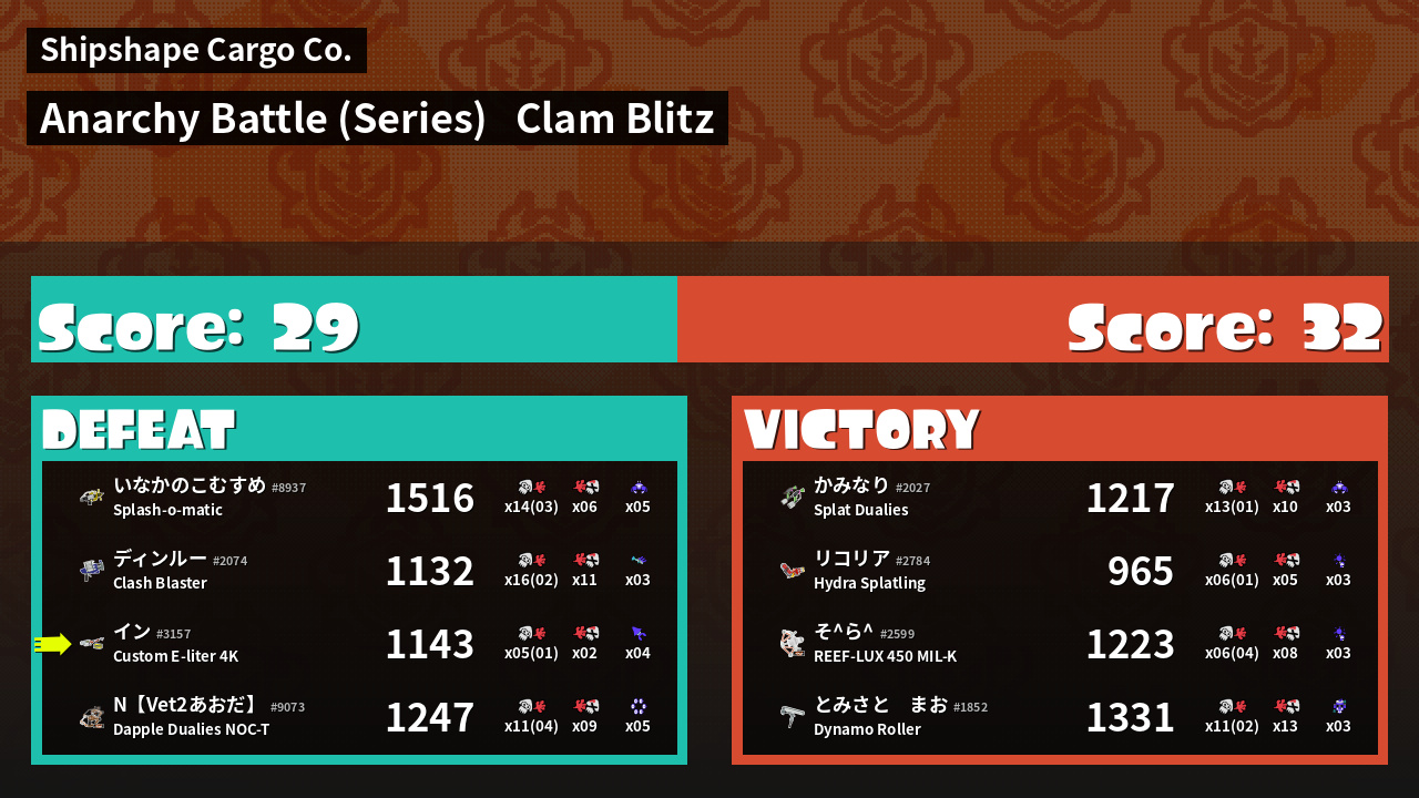 Results of イン's Battle