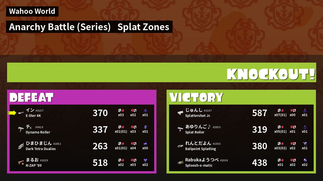 | Mode | Splat Zones - Anarchy Battle (Series) |