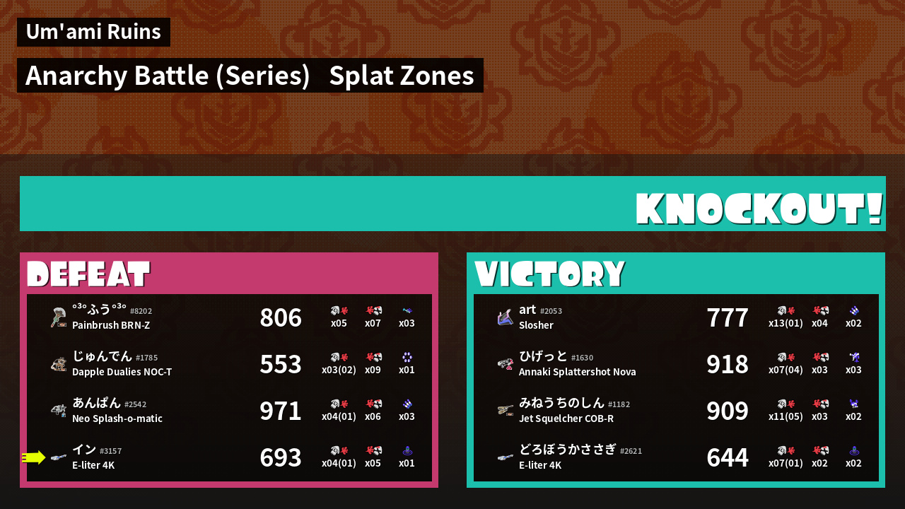 | Mode | Splat Zones - Anarchy Battle (Series) |