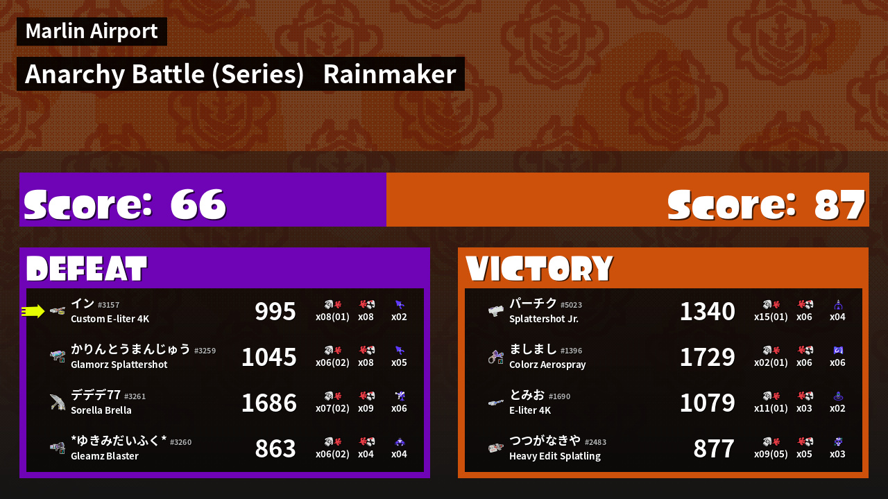 Results of イン's Battle