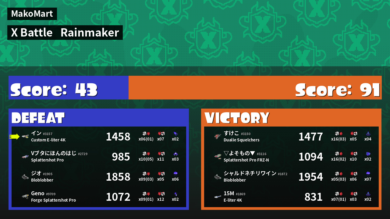| Mode | Rainmaker - X Battle |