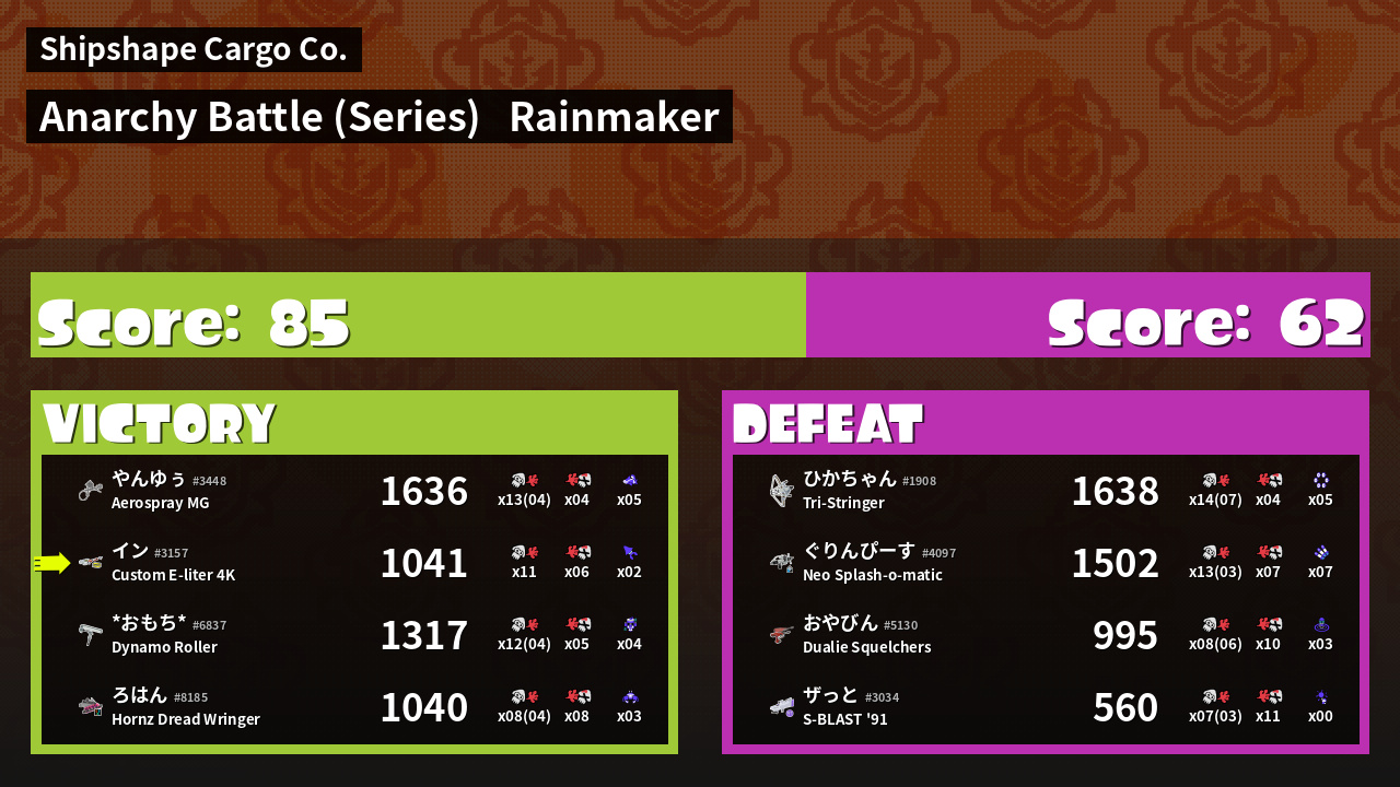 | Mode | Rainmaker - Anarchy Battle (Series) |