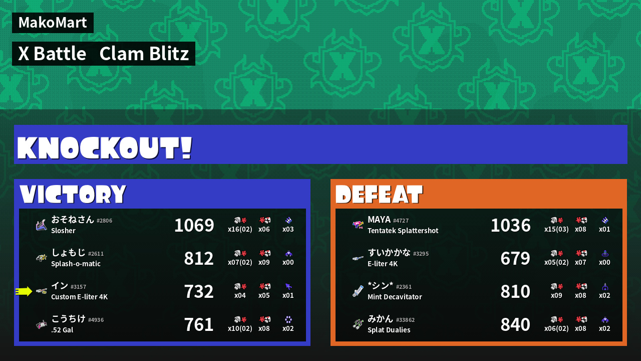 Results of イン's Battle