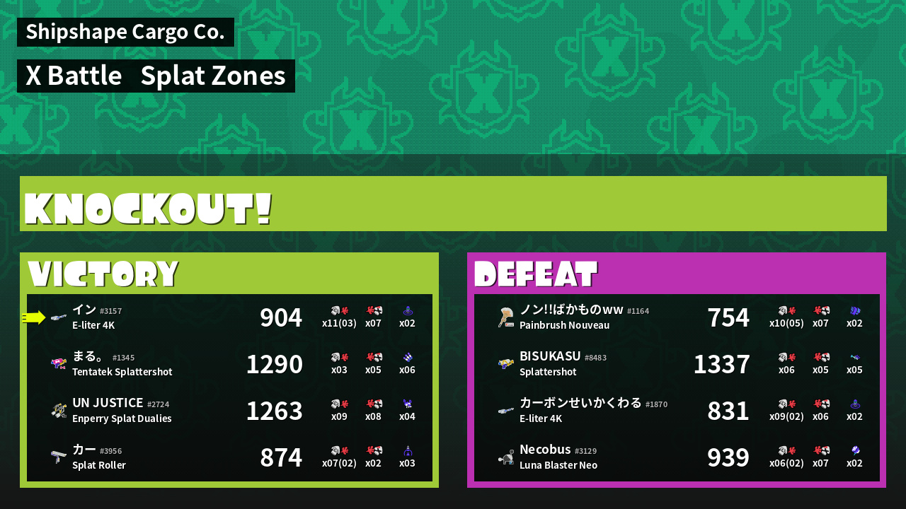 | Mode | Splat Zones - X Battle |