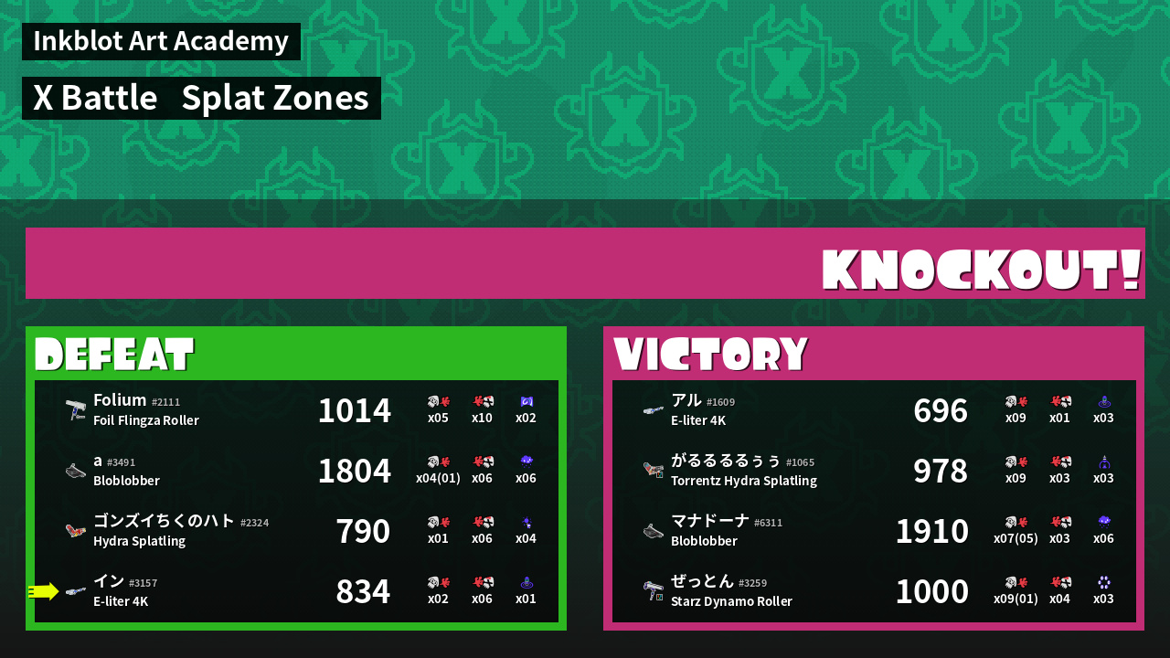 | Medals |   #1 Damage Taker  First Splat!  #2 Splat Zone Inker |