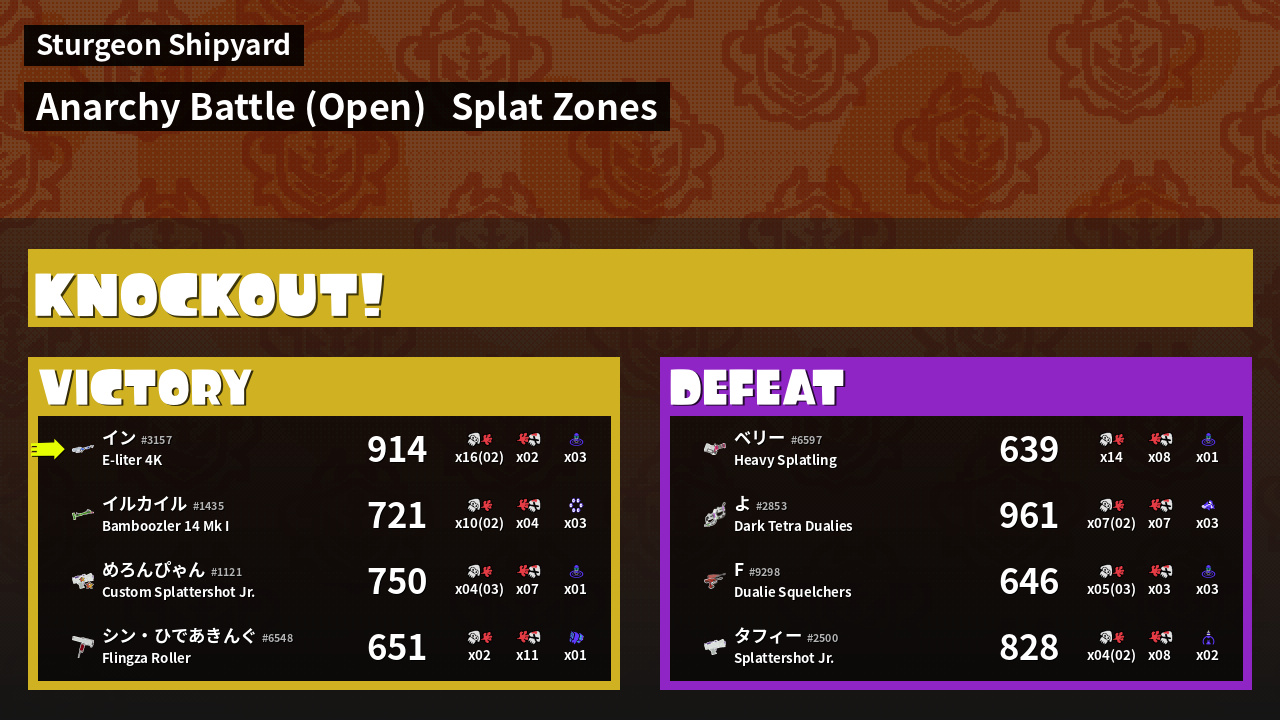 | Mode | Splat Zones - Anarchy Battle (Open) | ||