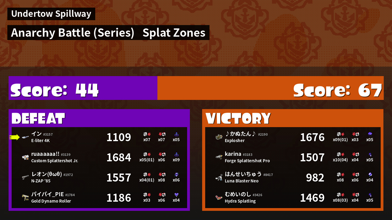 | Mode | Splat Zones - Anarchy Battle (Series) |