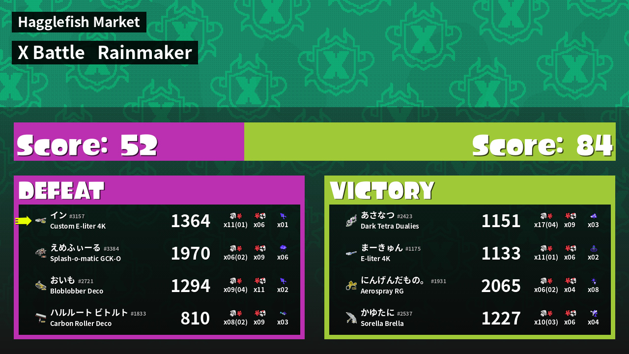 | Mode | Rainmaker - X Battle |