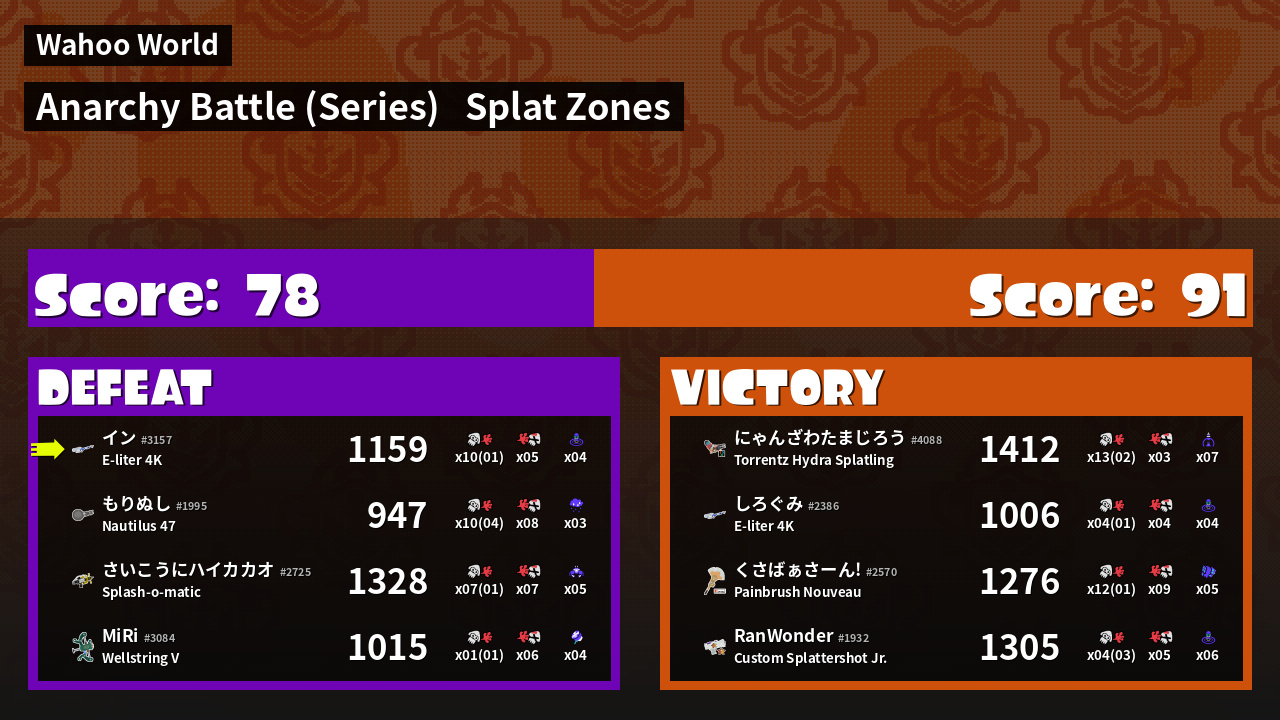 | Mode | Splat Zones - Anarchy Battle (Series) |