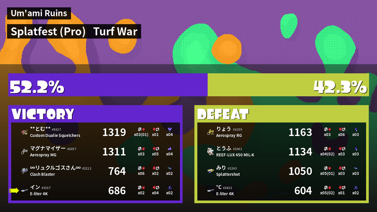 | Mode | Turf War - Splatfest (Pro) |