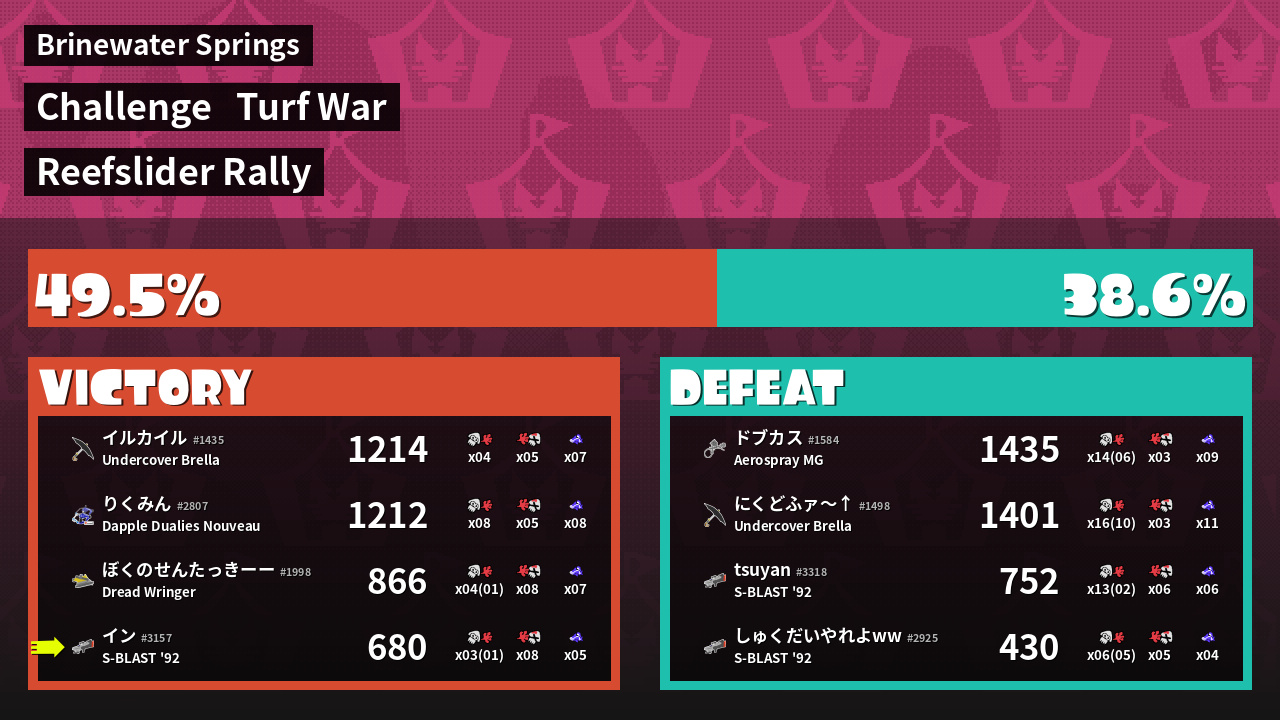 | Mode |    Turf War -   Challenge | ||