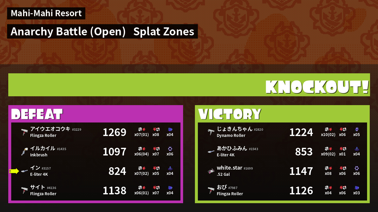 | Mode | Splat Zones - Anarchy Battle (Open) | ||