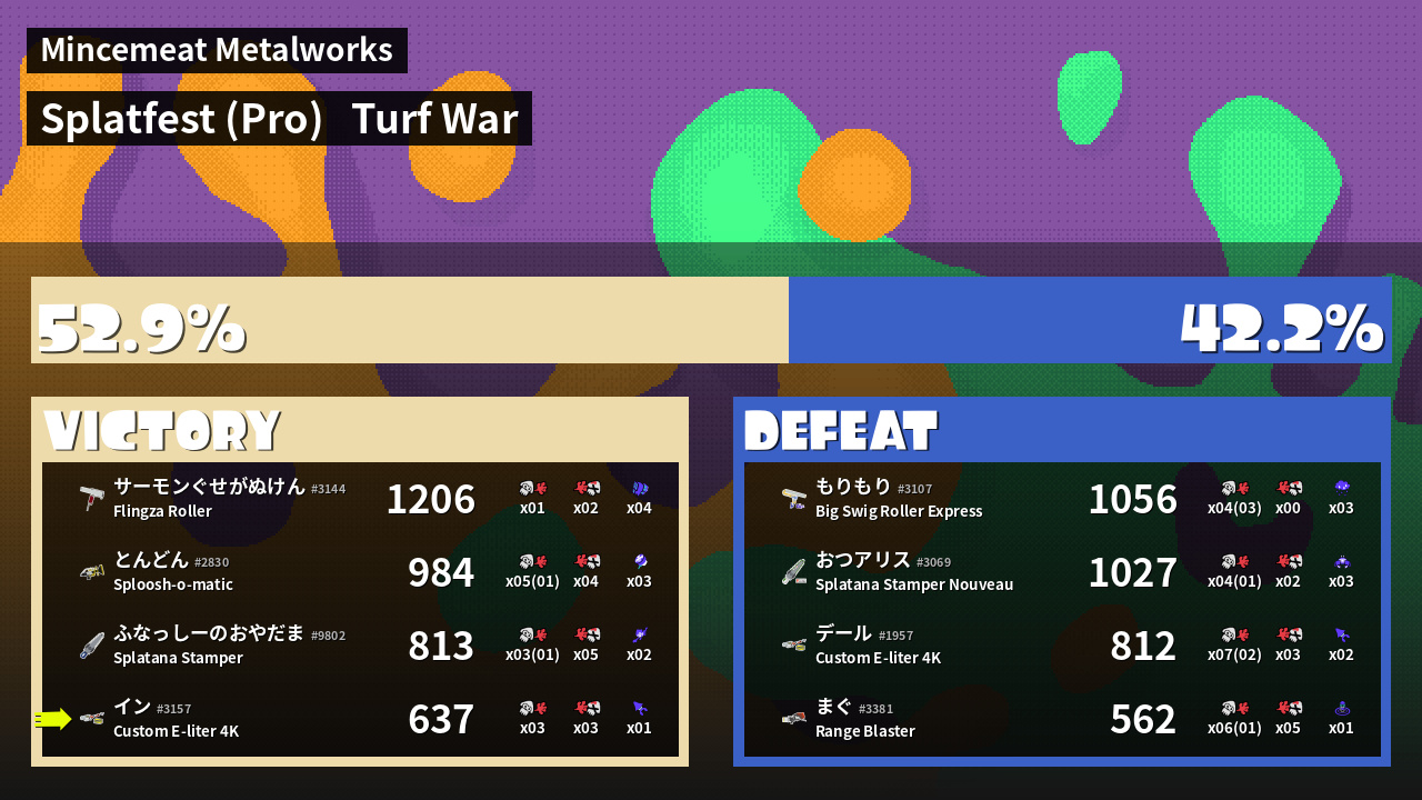 | Mode | Turf War - Splatfest (Pro) | ||