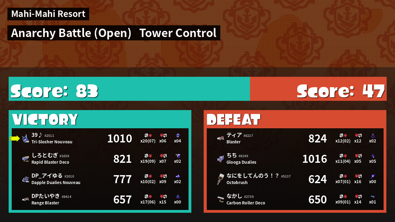 | Mode | Tower Control - Anarchy Battle (Open) | ||