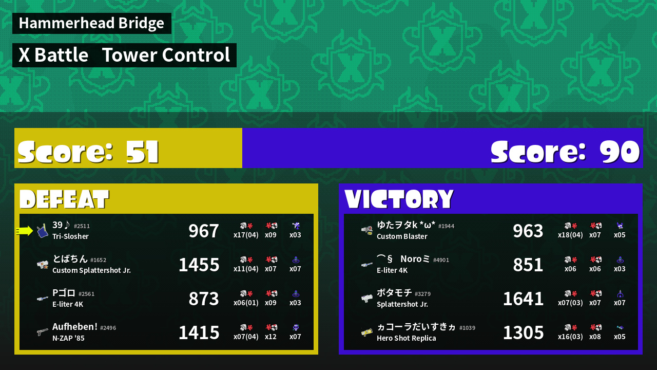 | Mode | Tower Control - X Battle | ||