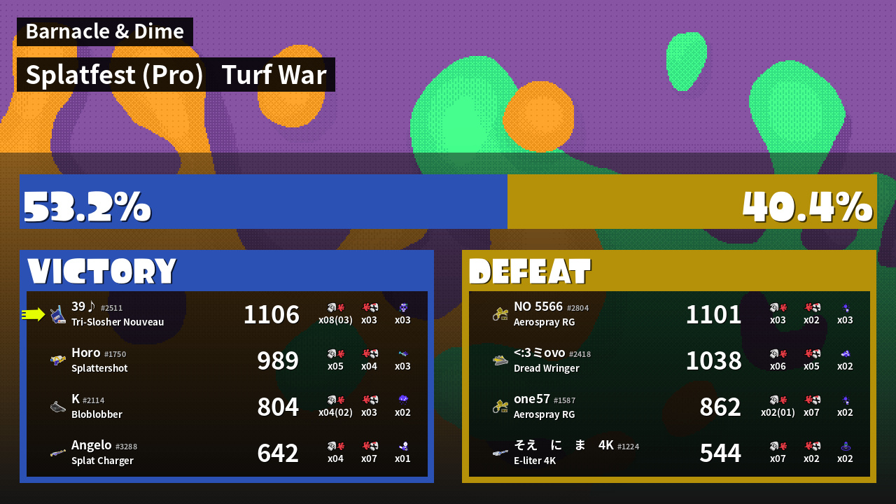 | Mode | Turf War - Splatfest (Pro) | ||