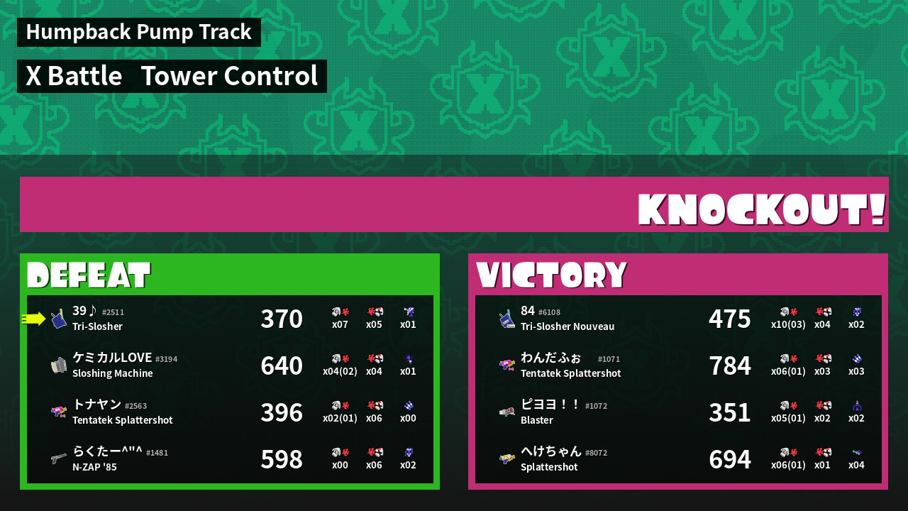 | Medals | #1 Overall Splatter #1 Score Booster Record-Score Setter | ||