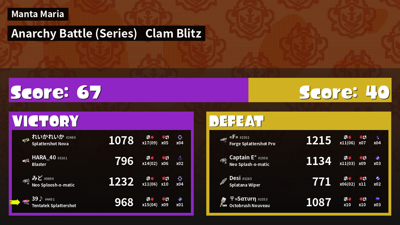| Mode | Clam Blitz - Anarchy Battle (Series) | ||