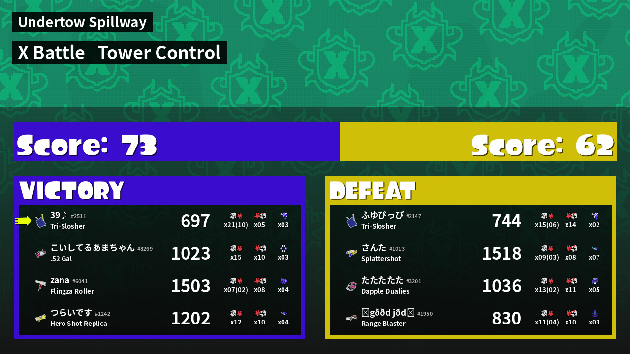 | Medals | #1 Overall Splatter #1 Score Booster Record-Score Setter | ||