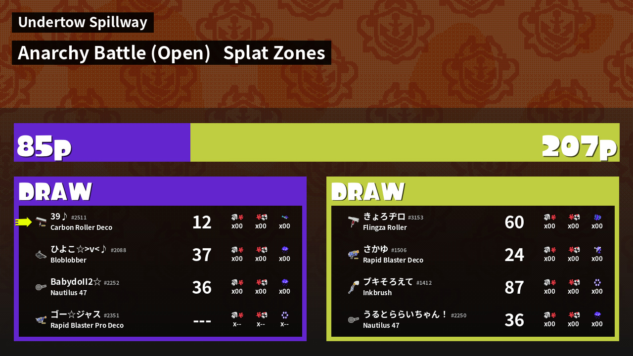 | Mode | Splat Zones - Anarchy Battle (Open) | ||