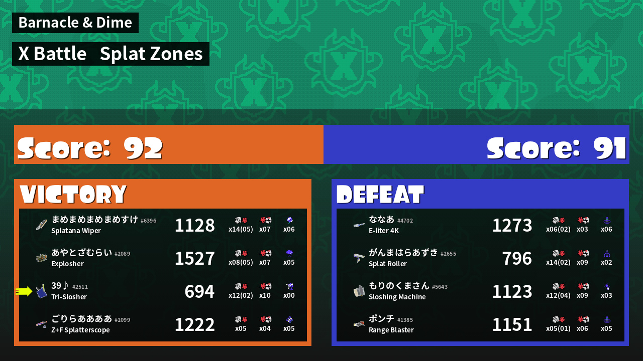 | Mode | Splat Zones - X Battle | ||