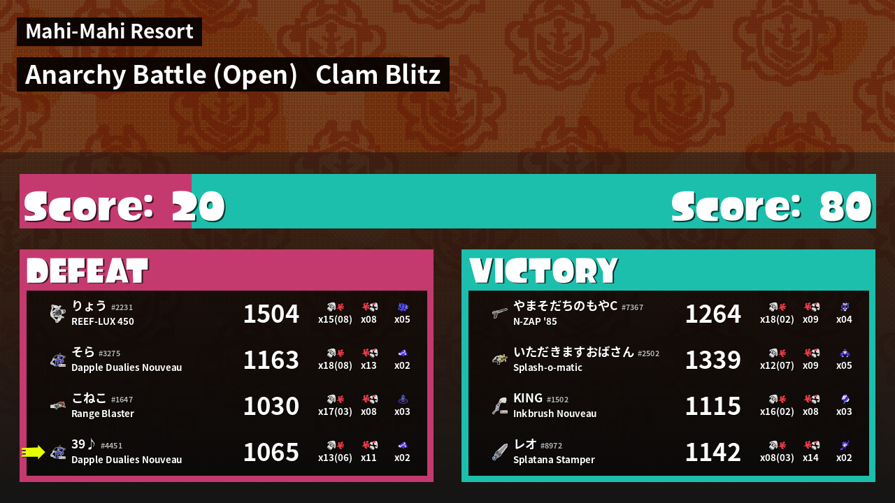 | Mode | Clam Blitz - Anarchy Battle (Open) | ||