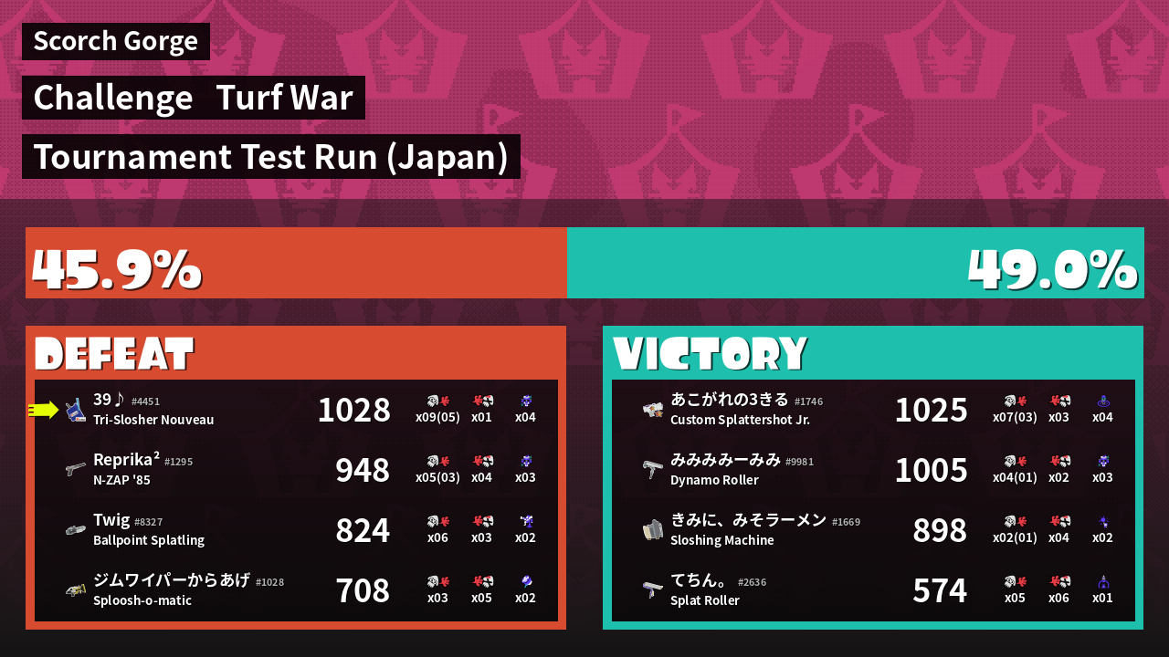 | Mode | Turf War - Challenge | ||