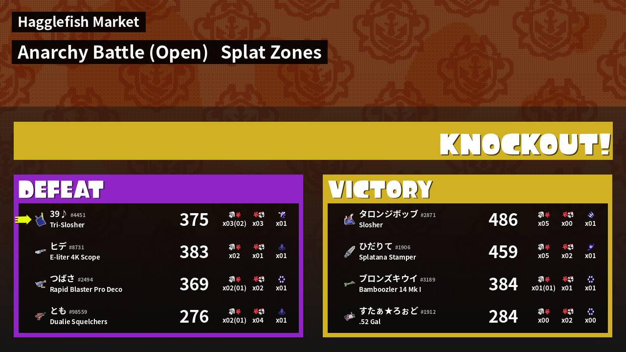| Mode | Splat Zones - Anarchy Battle (Open) | ||