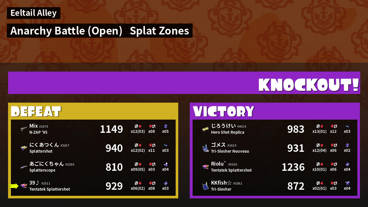| Mode | Splat Zones - Anarchy Battle (Open) | ||