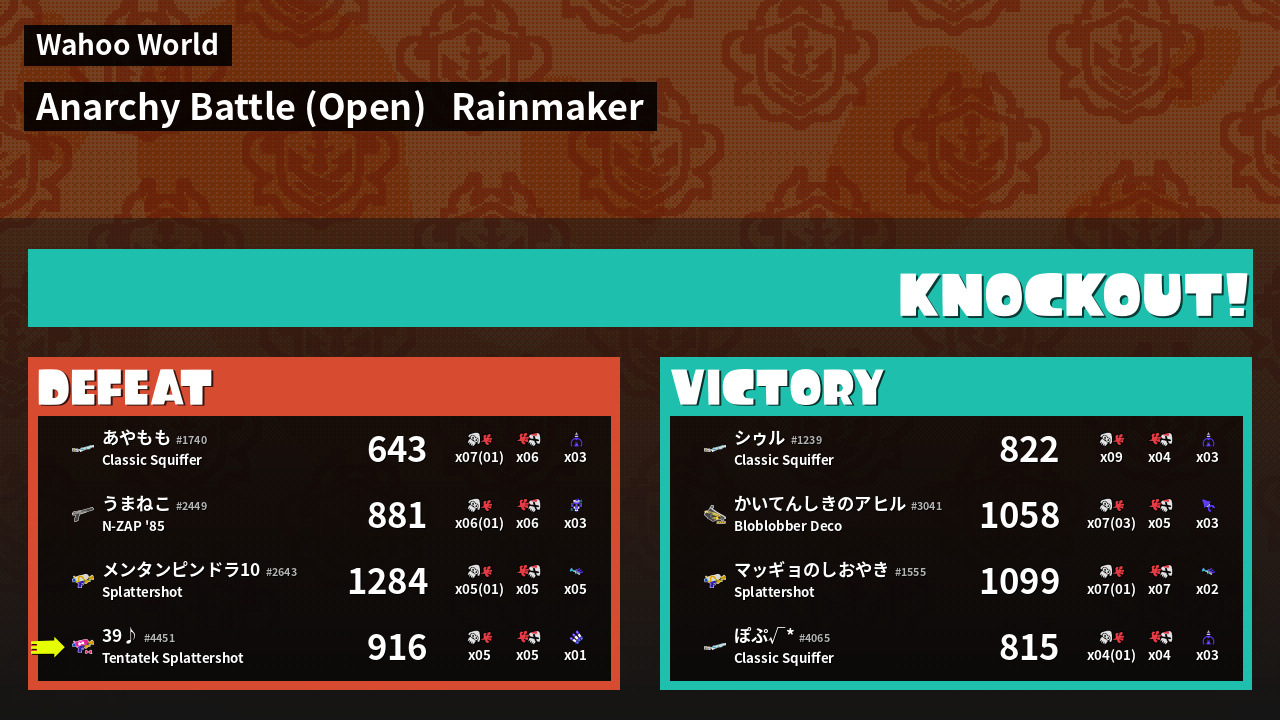 | Mode | Rainmaker - Anarchy Battle (Open) | ||