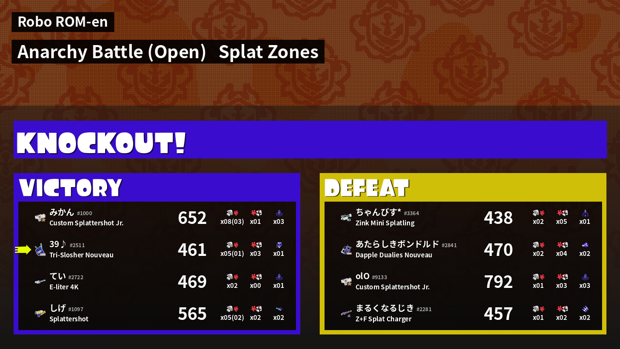 | Mode | Splat Zones - Anarchy Battle (Open) | ||