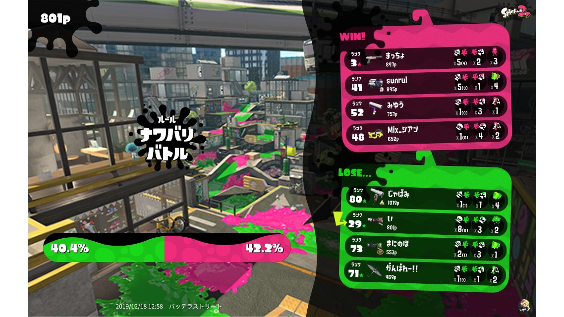 | Mode | Turf War - Regular Battle | ||||||||||||||||||||||||||||||||||||||||||||||