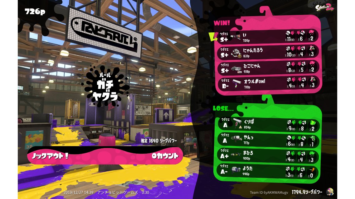 ★32 | S+ | 726 | 11 (0) / 2 | 11 / 6 | 1.83 64.71% | ||