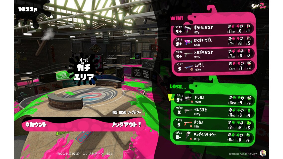 | Mode | Splat Zones - League Battle (Twin) | ||||||||||||||||||||||||||||||||||