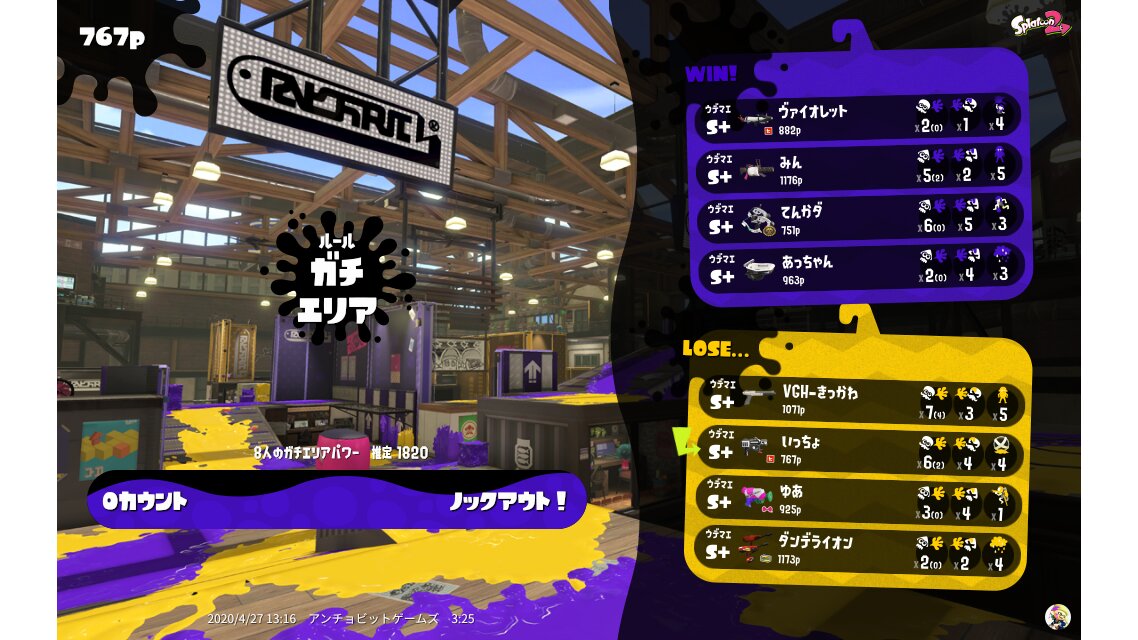 | Mode | Splat Zones - Ranked Battle | ||||||||||||||||||||||||||||||||||