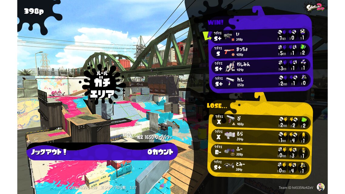 | Mode | Splat Zones - League Battle (Twin) | ||||||||||||||||||||||||||||||||||
