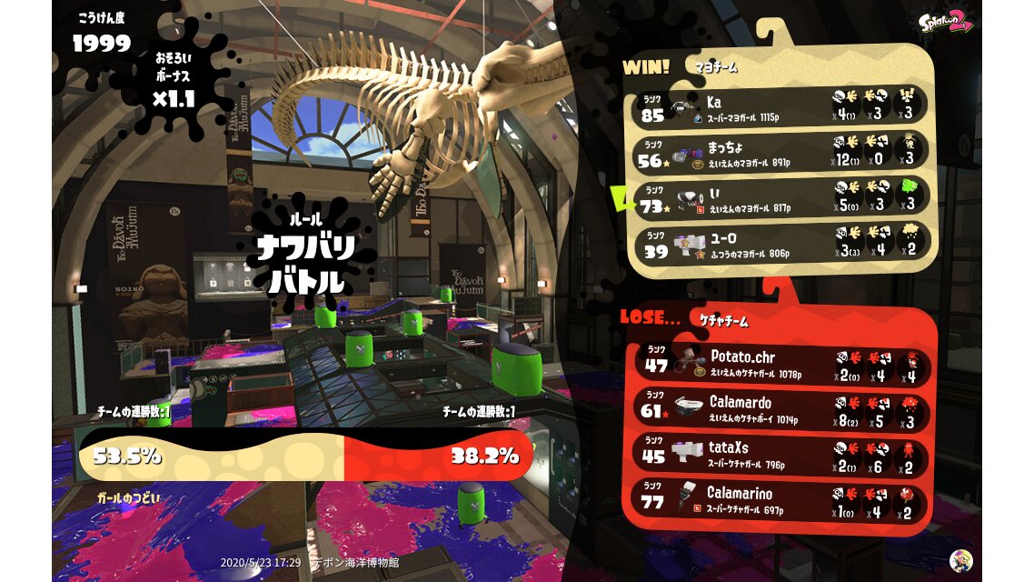 | Team ケチャ Win Streak: 1 | 3,585 | 10 / 19 | 0.53 34.48% | ||||