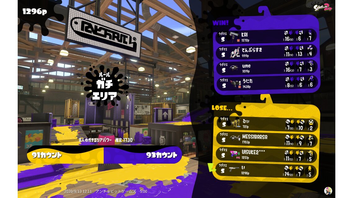 | Mode | Splat Zones - Ranked Battle | ||||||||||||||||||||||||||||||||||