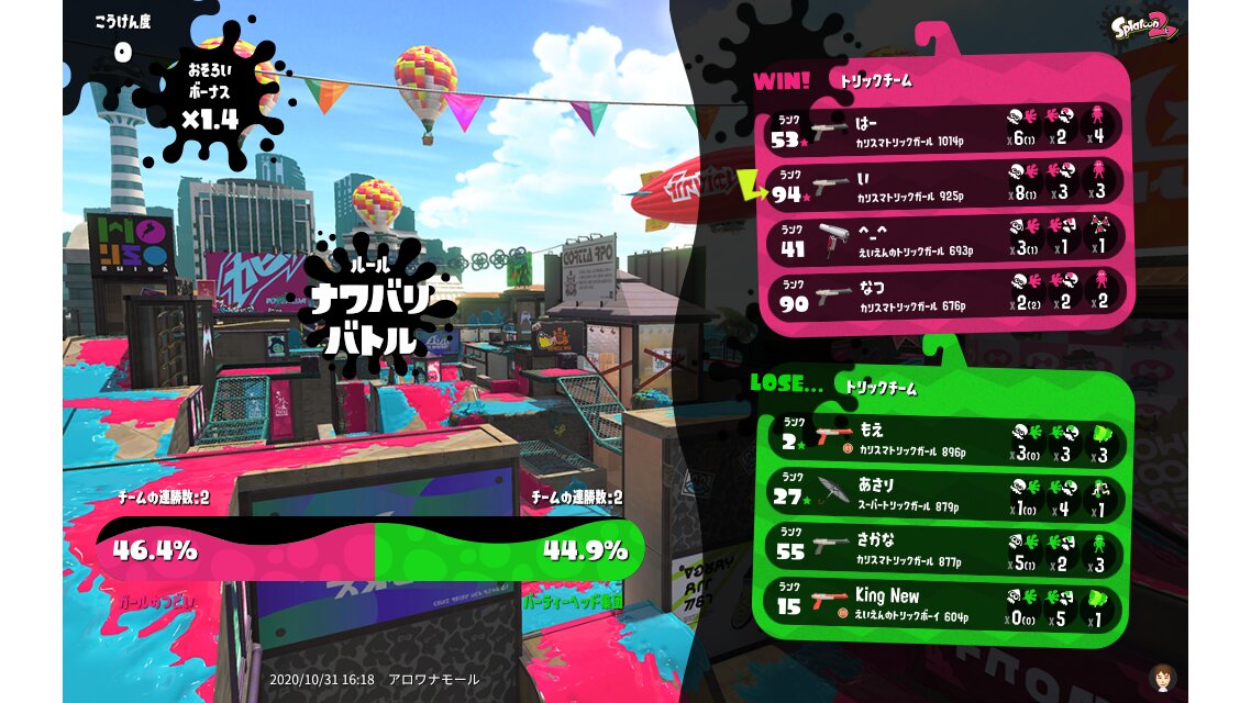 | Splatfest Title | トリック Champion 30 → トリック Champion 142 | ||||||||||||||||||||||||||||||||||