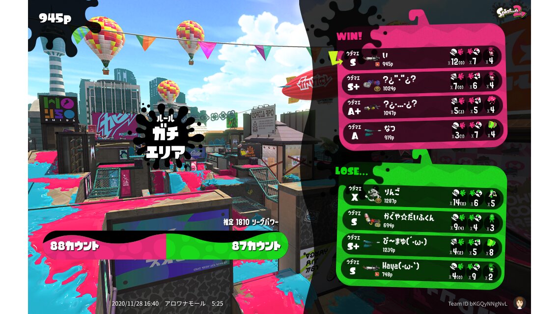 | Mode | Splat Zones - League Battle (Twin) | ||||||||||||||||||||||||||||||||||