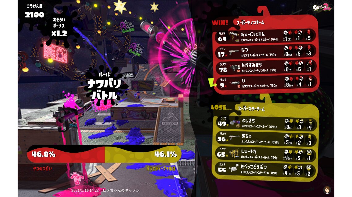 | Splatfest Title | スーパーキノコ Champion 299 → スーパーキノコ Champion 407 | ||||||||||||||||||||||||||||||||||||||||