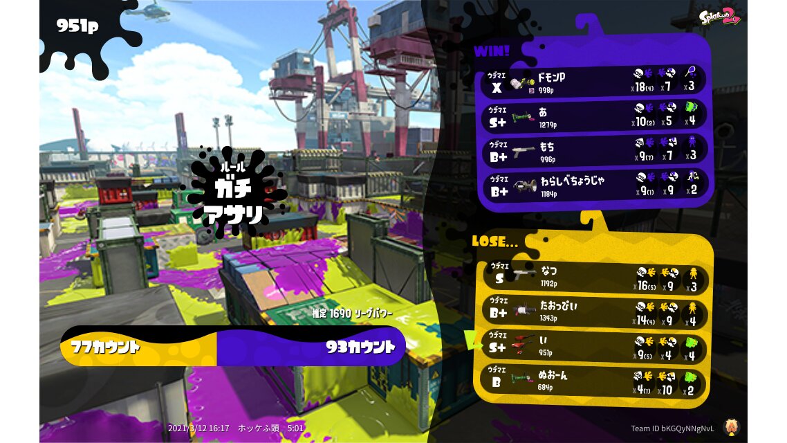 | Mode | Clam Blitz - League Battle (Twin) | |||||||||||||||||||||||||||||||
