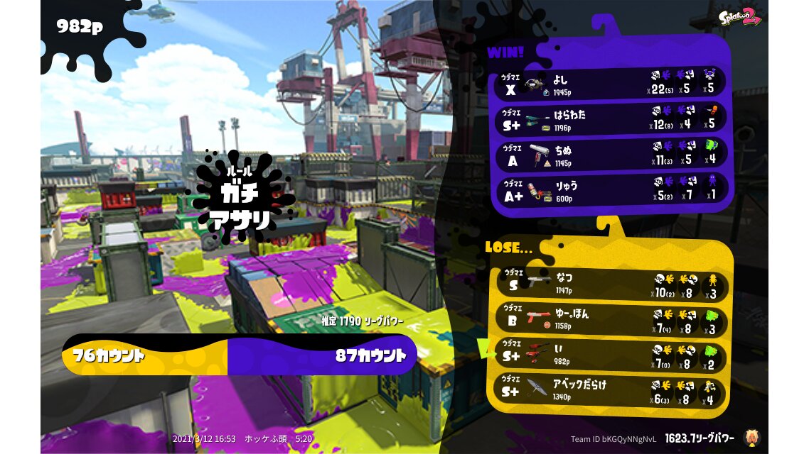 | Mode | Clam Blitz - League Battle (Twin) | |||||||||||||||||||||||||||||||