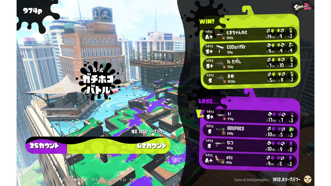 | Mode | Rainmaker - League Battle (Twin) | ||||||||||||||||||||||||||||||||||