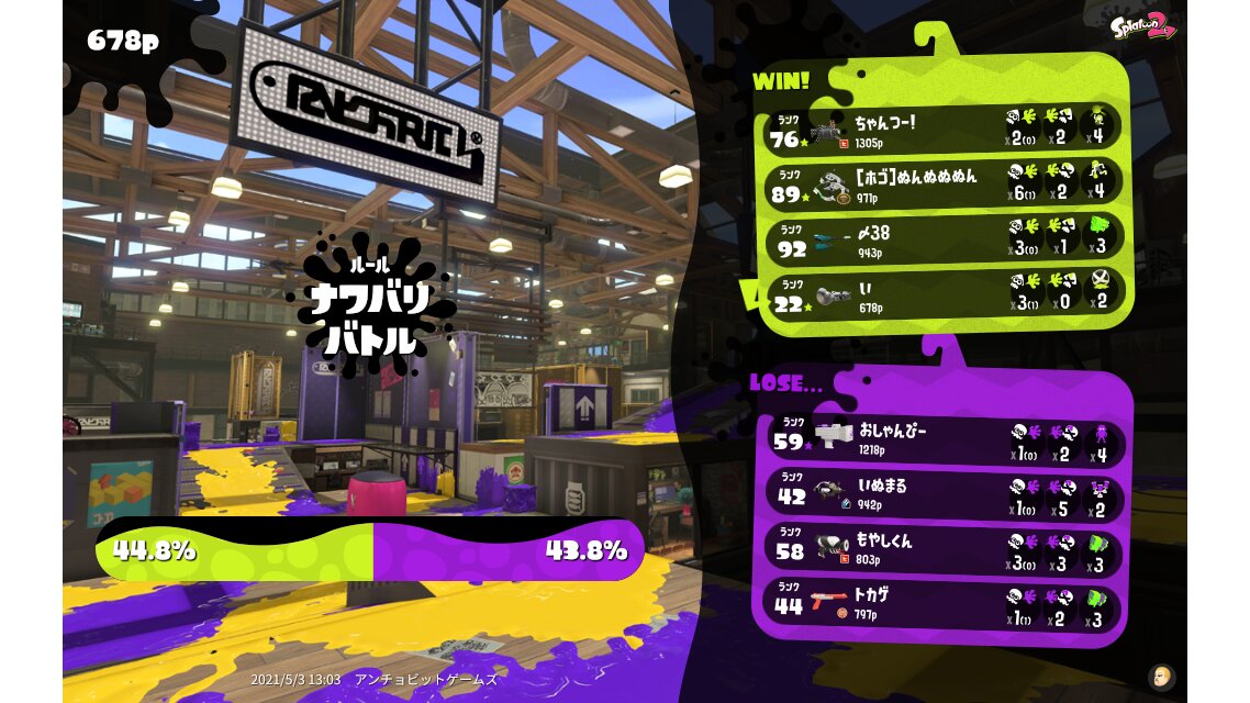 | Mode | Turf War - Private Battle | ||||||||||||||||||||||||||||||||||