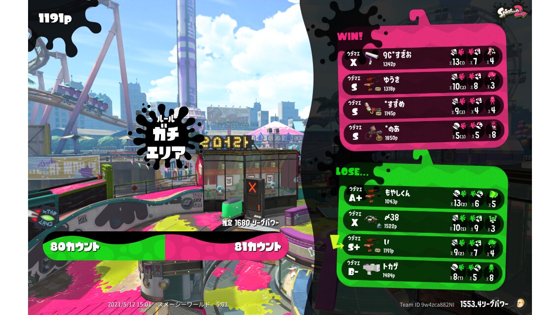 | Mode | Splat Zones - League Battle (Quad) | |||||||||||||||||||||||||||||||
