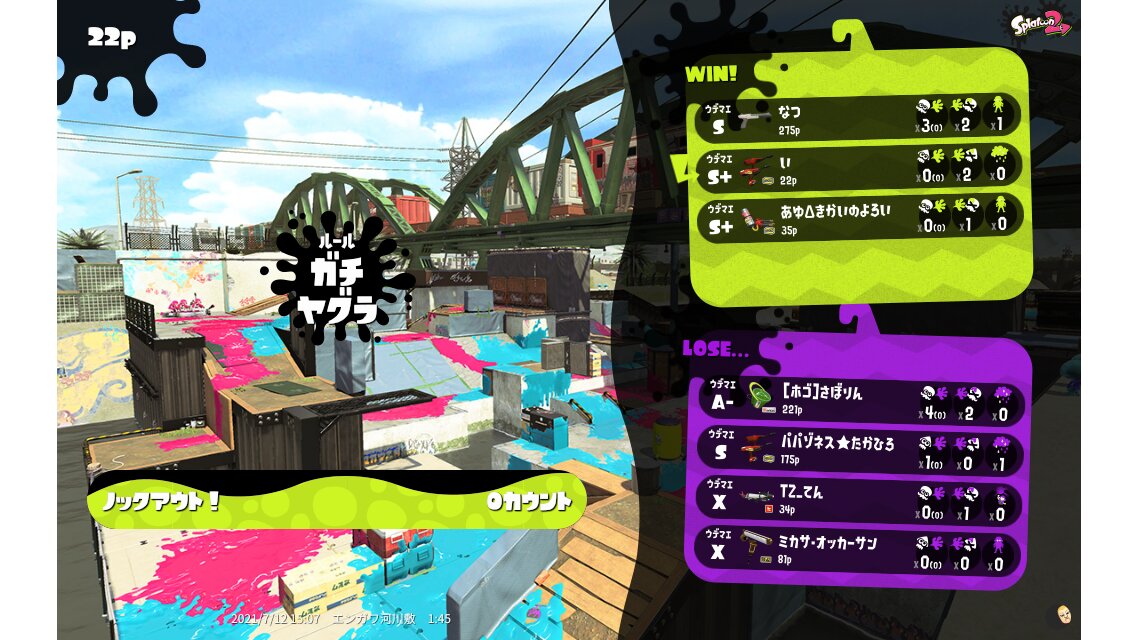 | Name | Weapon | Level | Rank | Inked | k+a/sp | k/d |