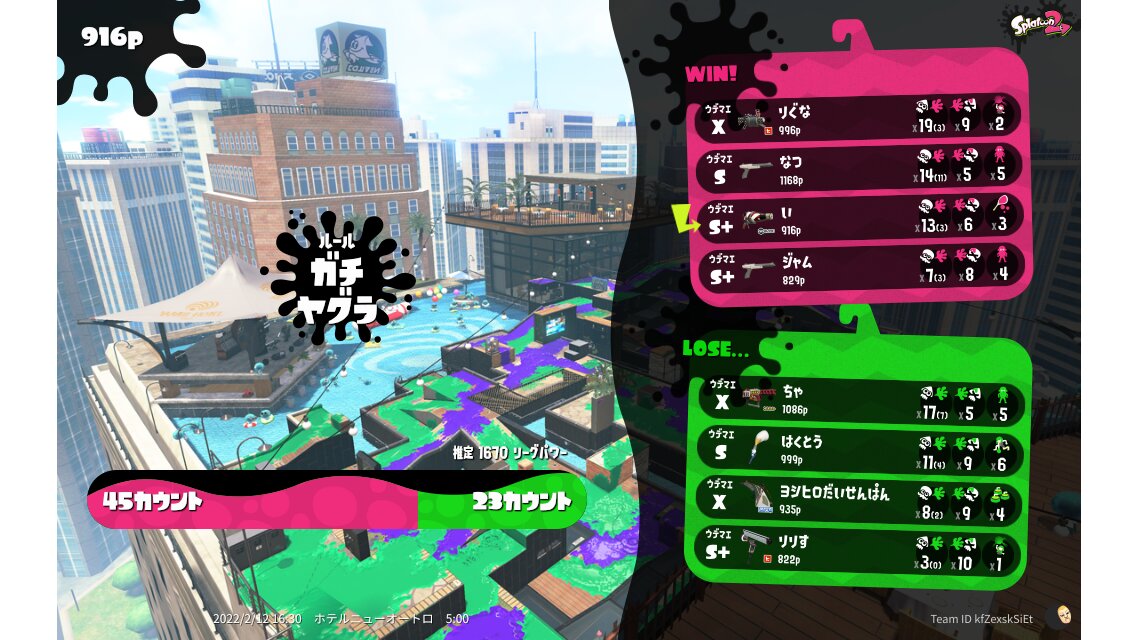 | Name | Weapon | Level | Rank | Inked | k+a/sp | k/d |