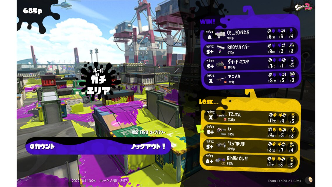 | Mode | Splat Zones - League Battle (Quad) | ||||||||||||||||||||||||||||||||||||||||||||||